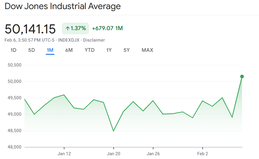 Dow Jones knackt 50.000 Punkte und markiert Rekord